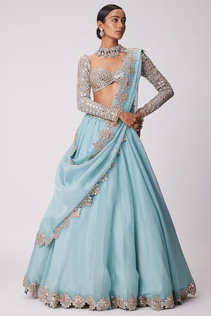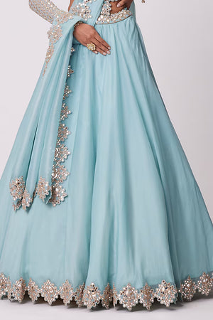 Powder Blue Organza Mirror Embroidered Lehenga Set