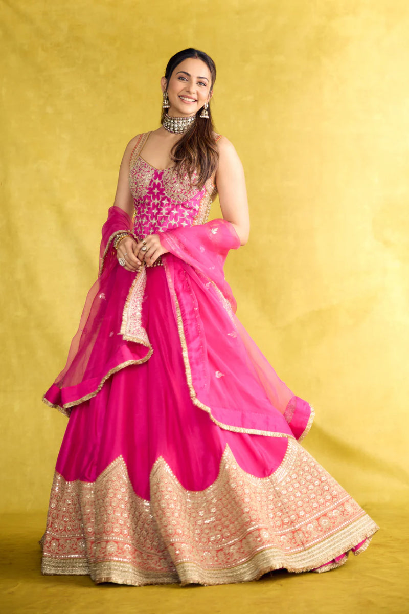 MILONI GANDHILEHENGA + BLOUSE + DUPATTA // FUSHSIA PINK ZARDOSI LEHENGA SET