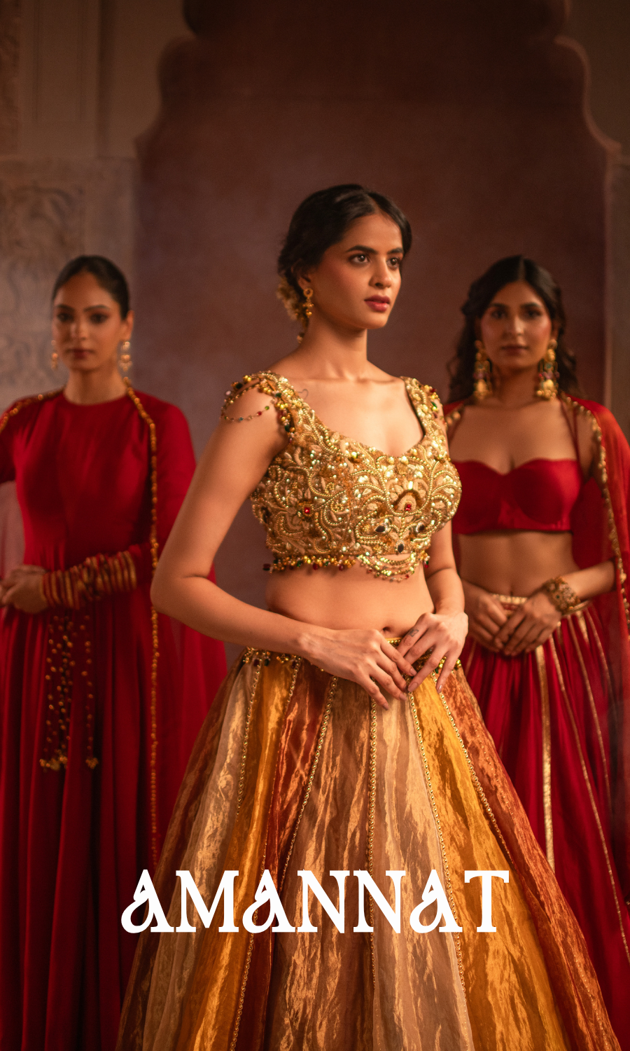 MILONI GANDHILEHENGA + BLOUSE + DUPATTA // PEACH SILK LEHENGA SET
