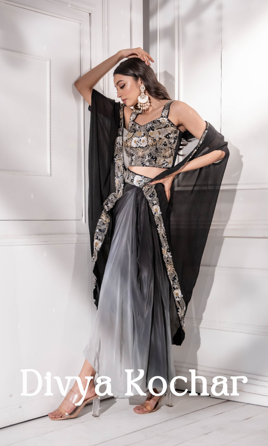 MILONI GANDHILEHENGA + BLOUSE + DUPATTA / PEACH LOTUS LEHENGA SET