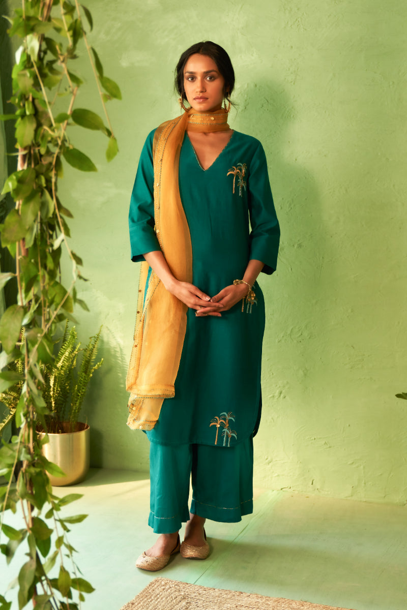 Velvet Green Kurta SetVelvet Green Kurta Set