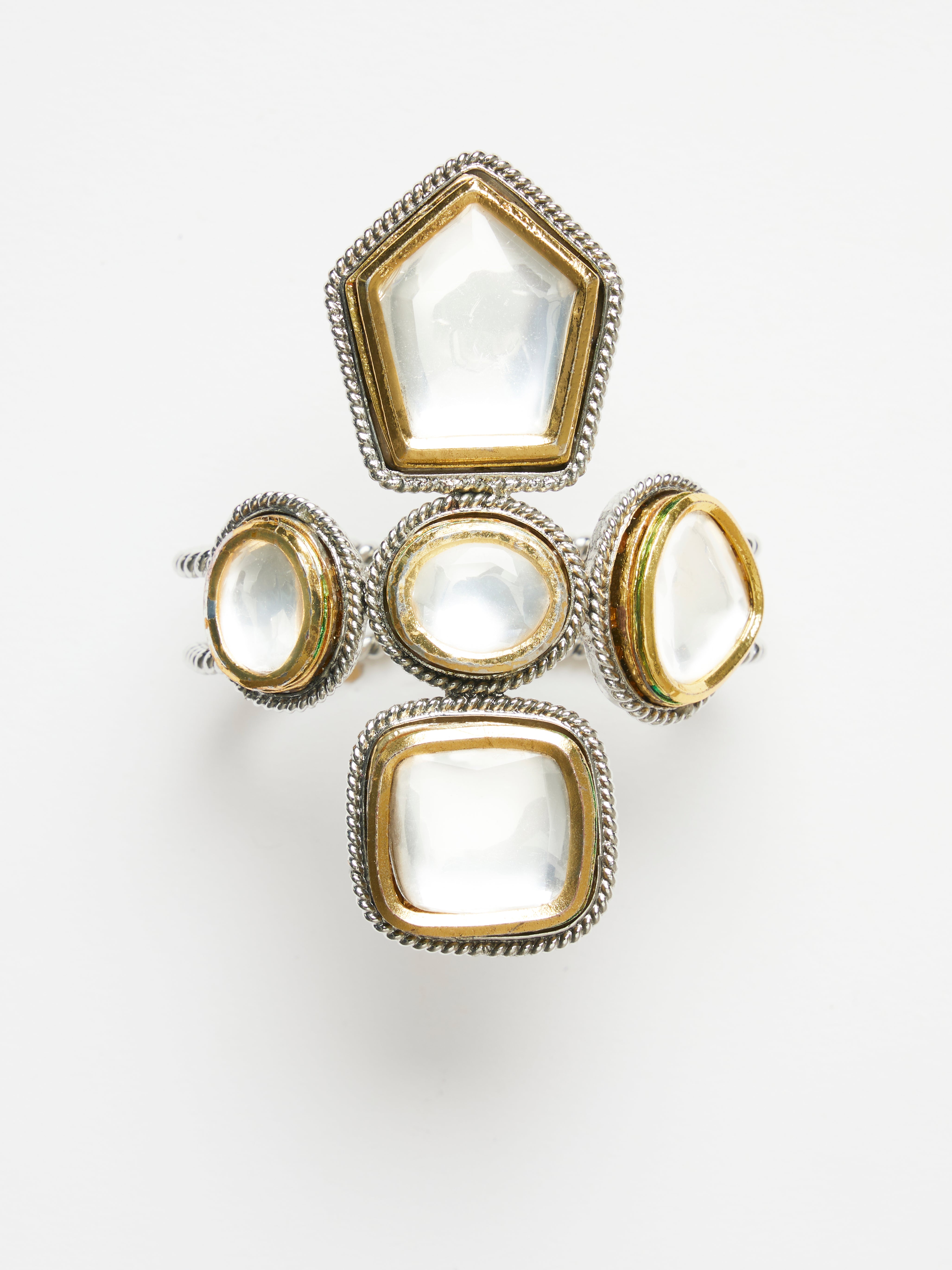 Suhani PittiGold Toned Cuff With Chartreuse Acrylic & Dotted Blocks