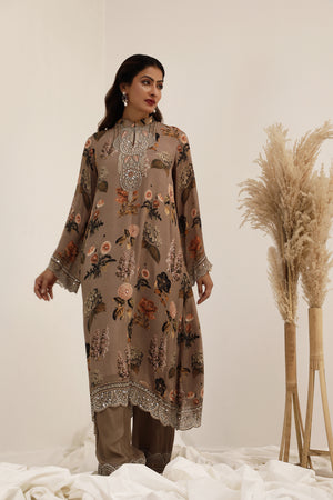 Crafted with Crepe and dominated by a unique Judge Gray color, decorated