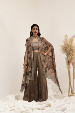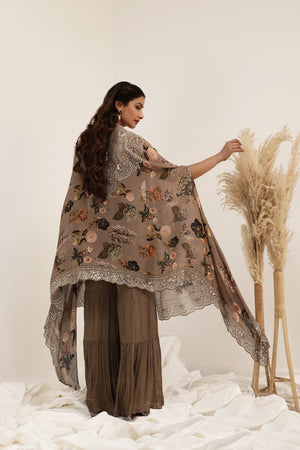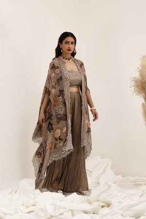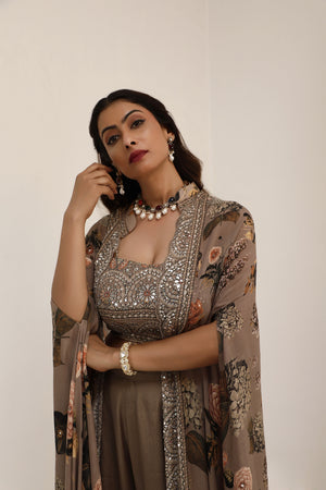 Crafted with Crepe and dominated by a unique Judge Gray color, decorated