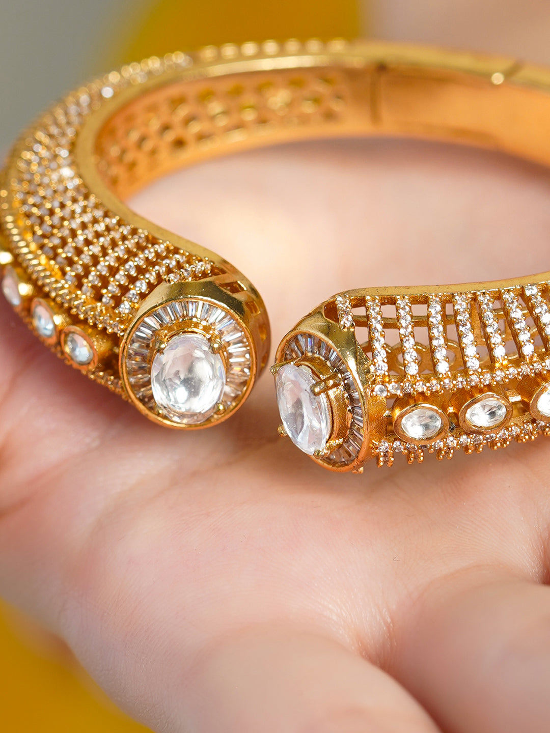 Enhance your elegance with the Aaliyah Kundan Bangle, a handcrafted Kundan bangle perfect for traditional and festive occasions.