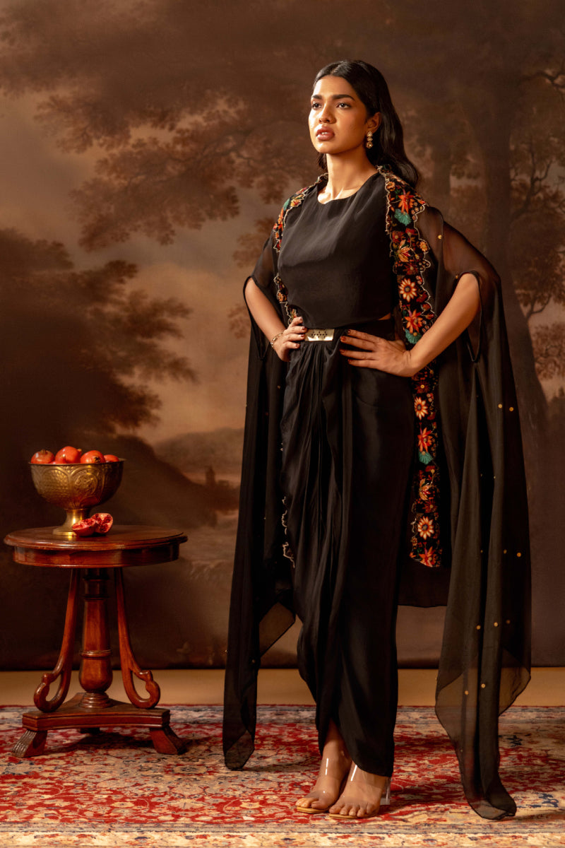 Aarani Embroidered drape dress set