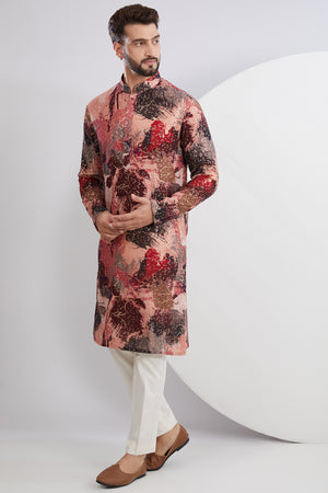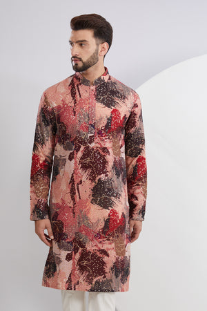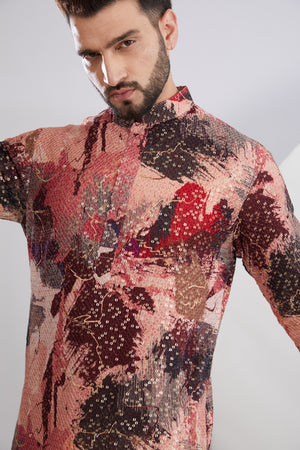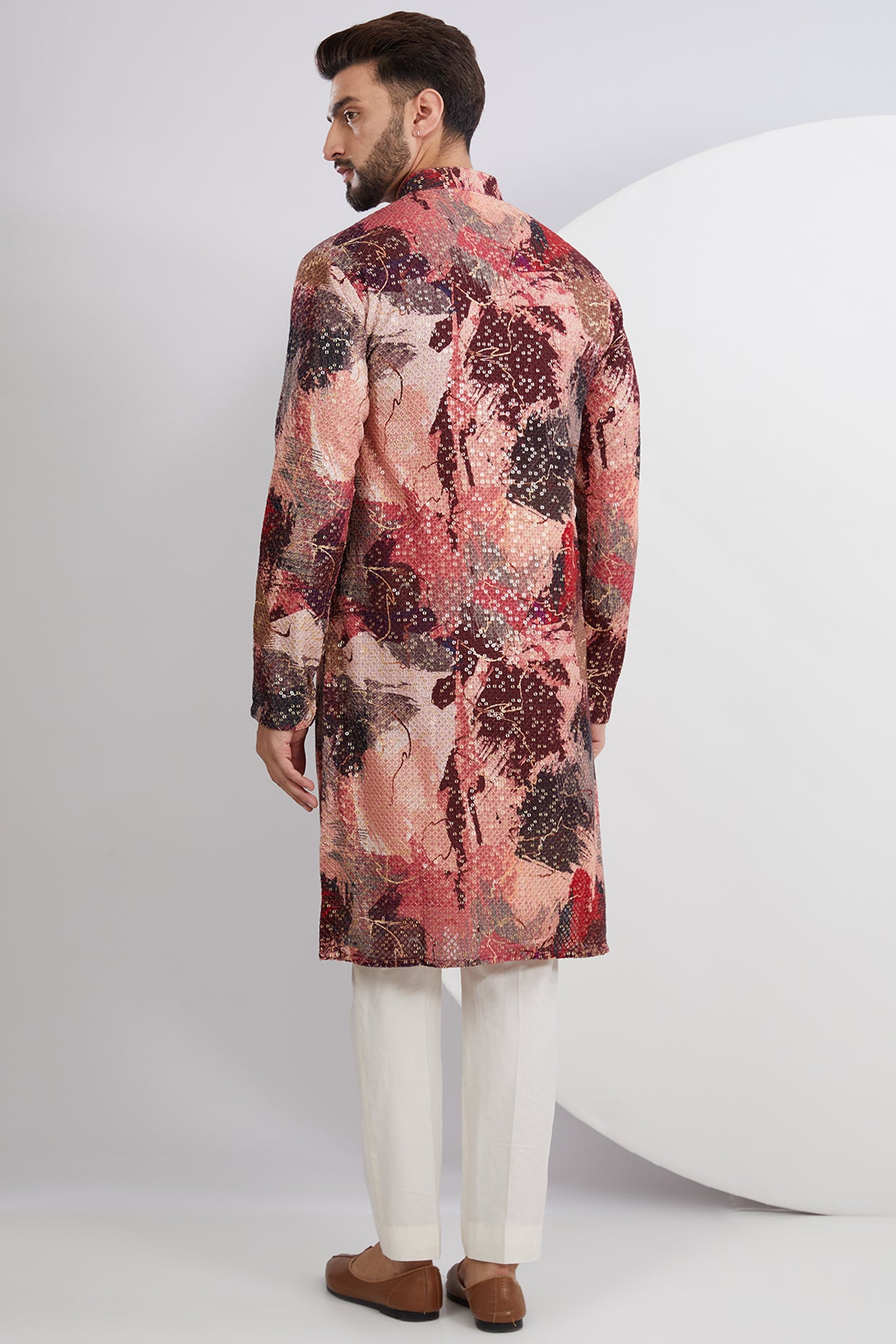 Abstract Embridered Kurta with Sequined Embroidery on print