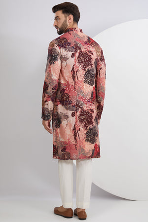 Abstract Embridered Kurta with Sequined Embroidery on print (Print Positioning may vary with every piece)
