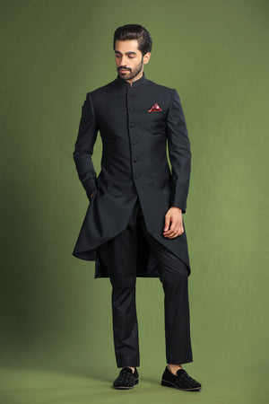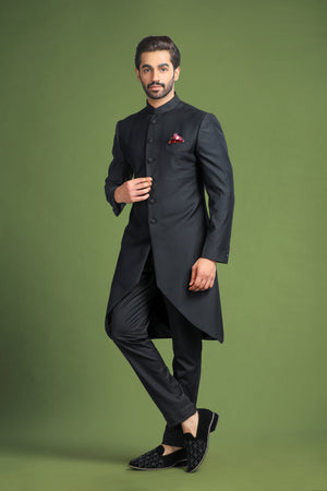 This achkan is a unique outfit that features a striking trail pattern crafted from high-quality Terry Viscose fabric. Designed with an offbeat vibe, this experimental and versatile garment is perfect for any occasion, seamlessly blending traditional elegance with modern flair.
