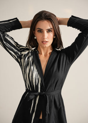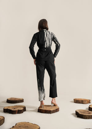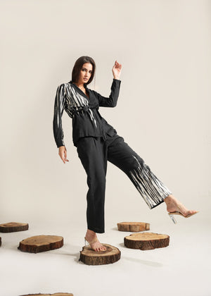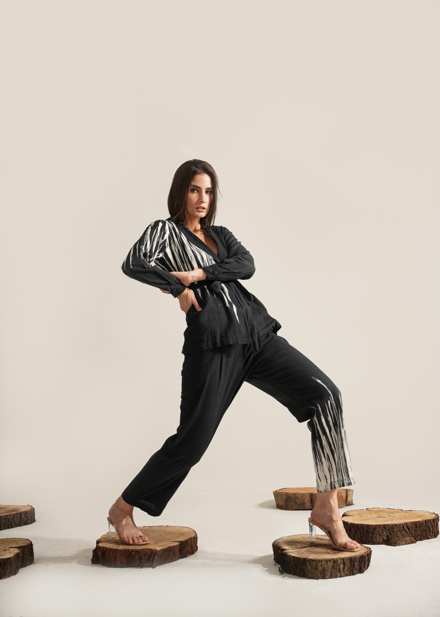 Adira Co-ord Set redefines power dressing. The Shibori dripping pattern adds a touch of artistic flair to this sleek ensemble, while its tailored silhouette ensures a confident and polished look.