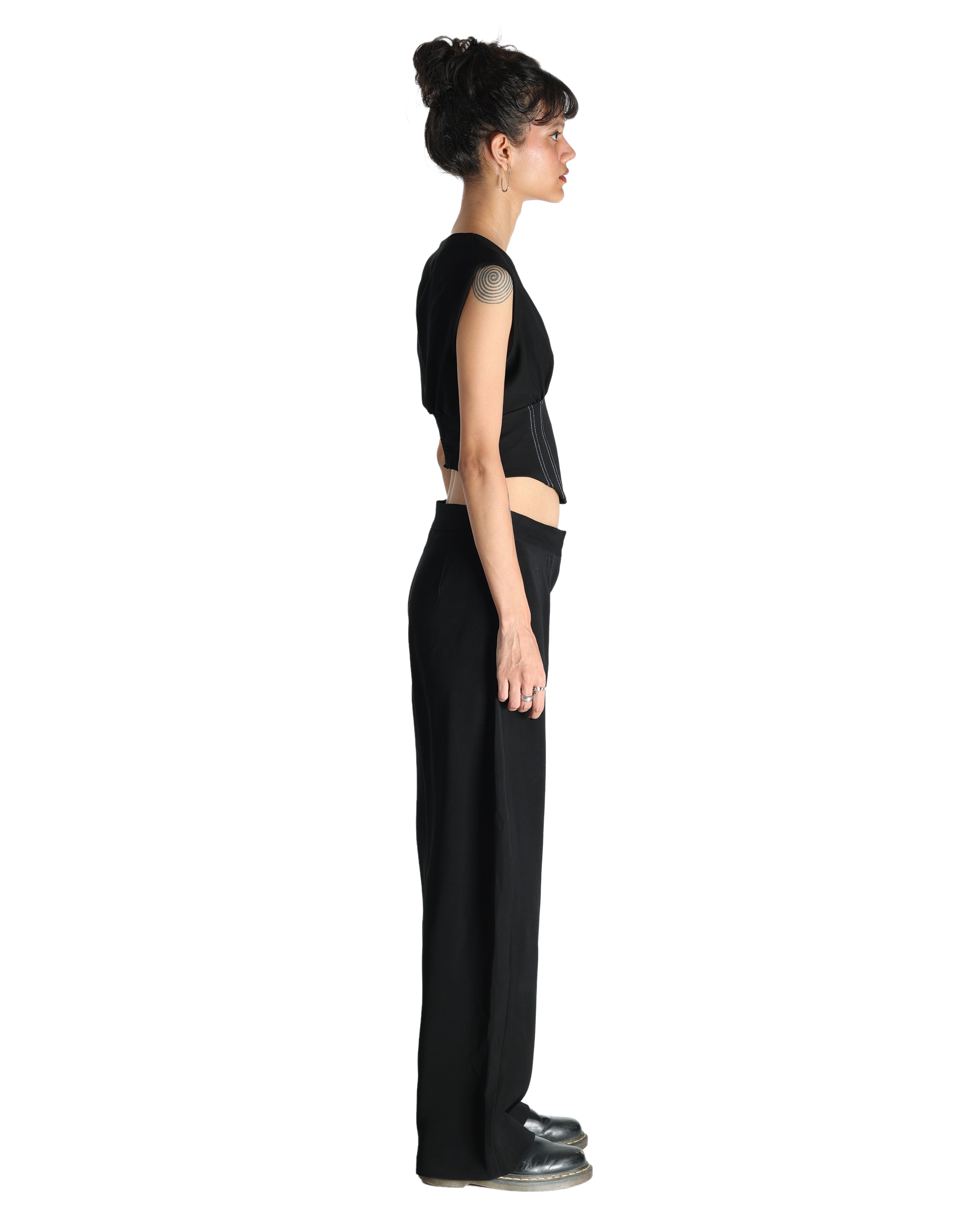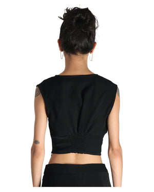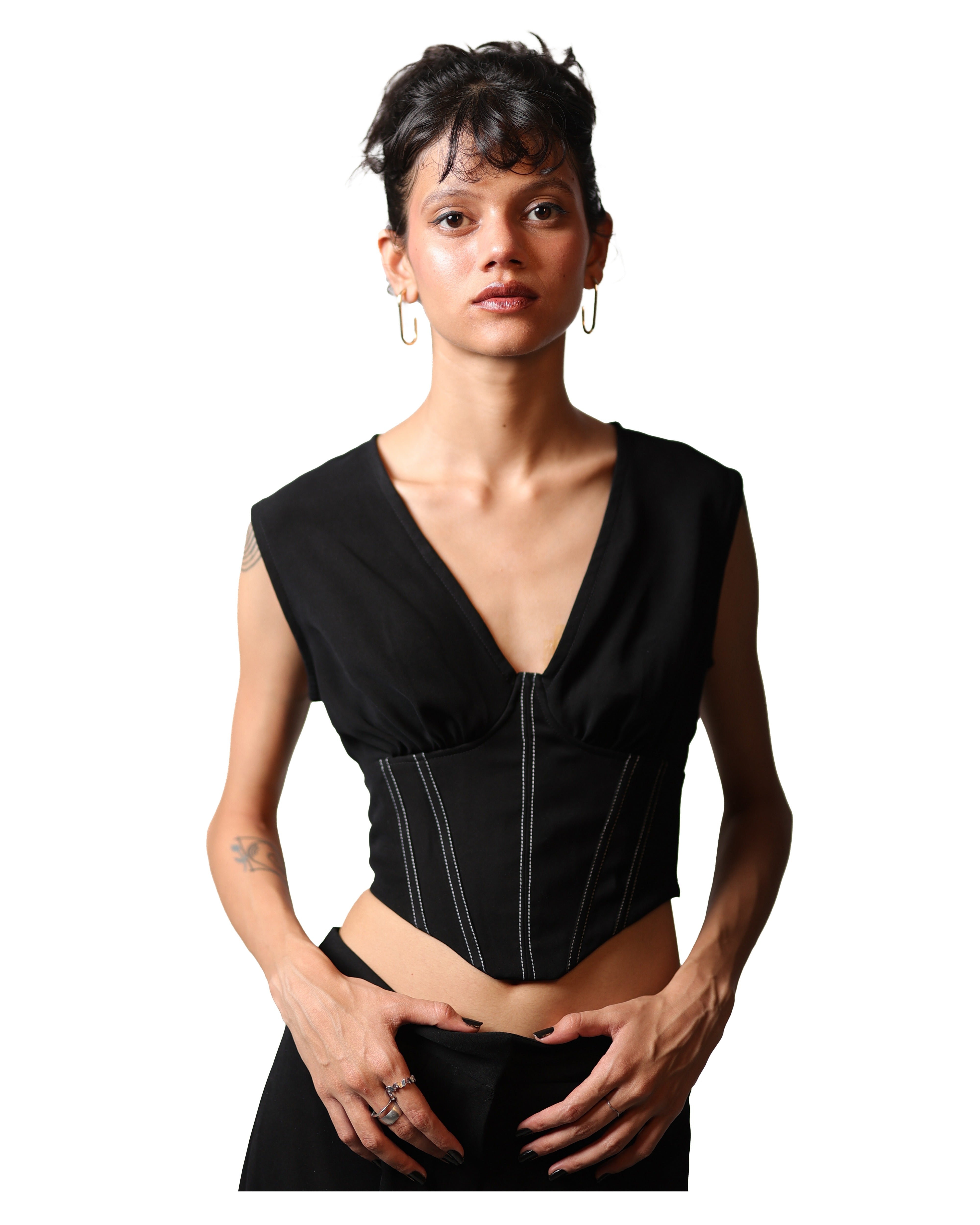 The Affair corset top features structured boning with white top-stitch detailing to create a slimming silhouette while cinching your waist. The back smocking detail ensures a comfortable, flexible fit, while the side zipper offers easy wearability.