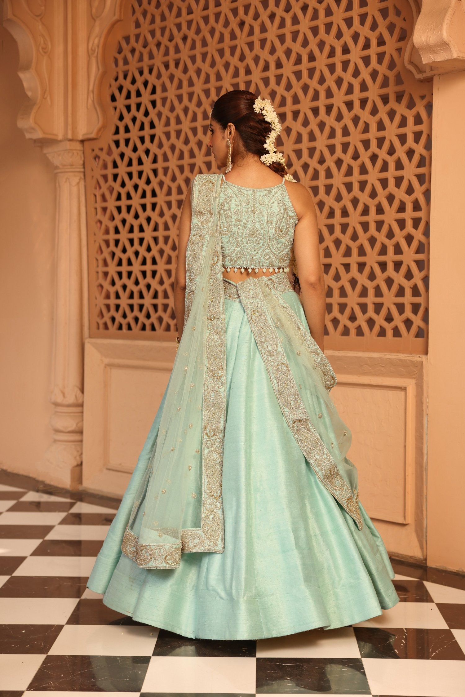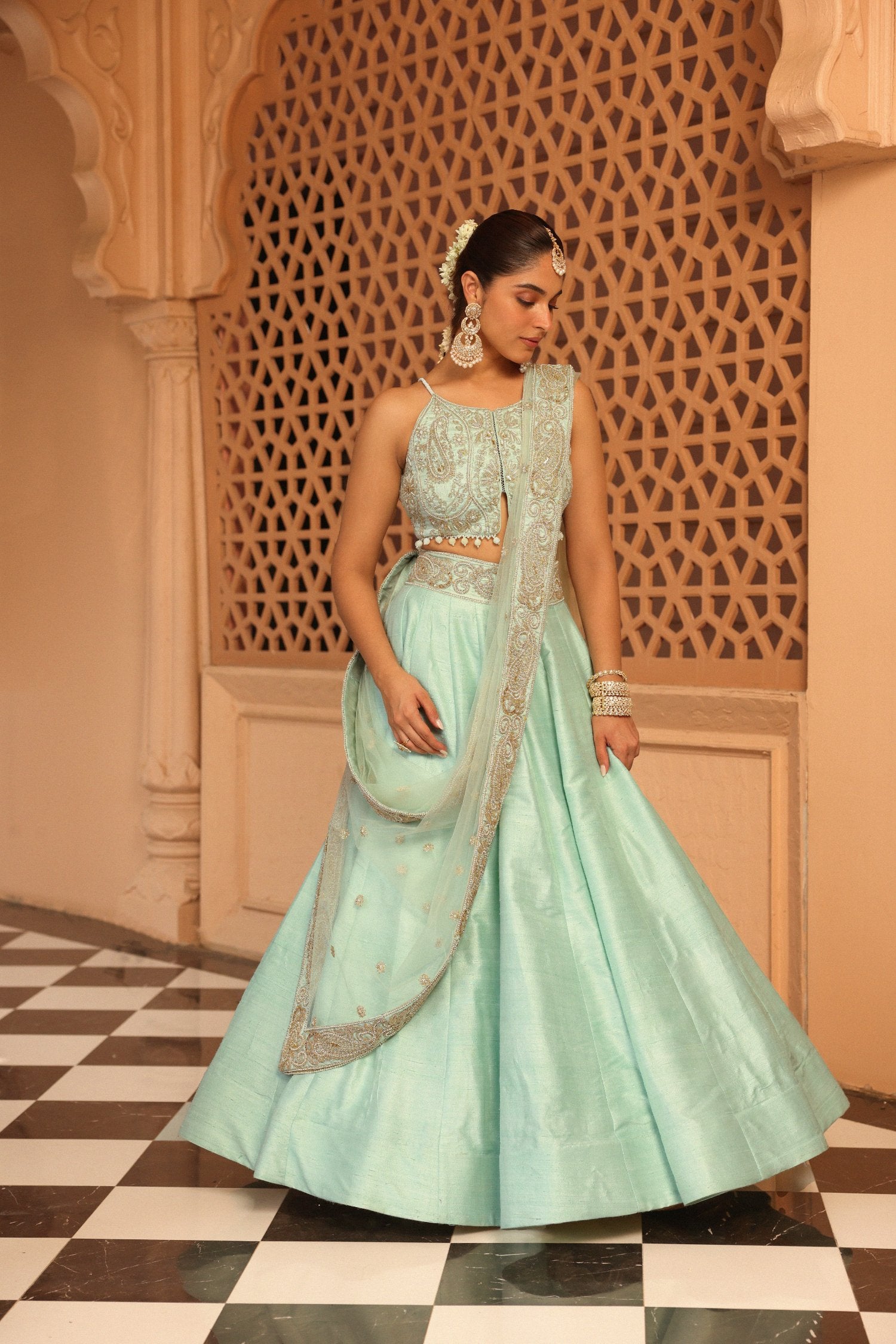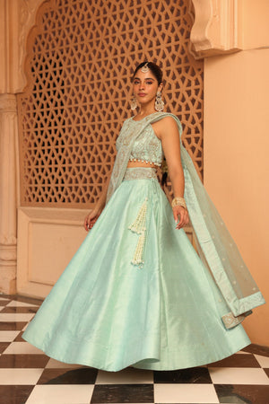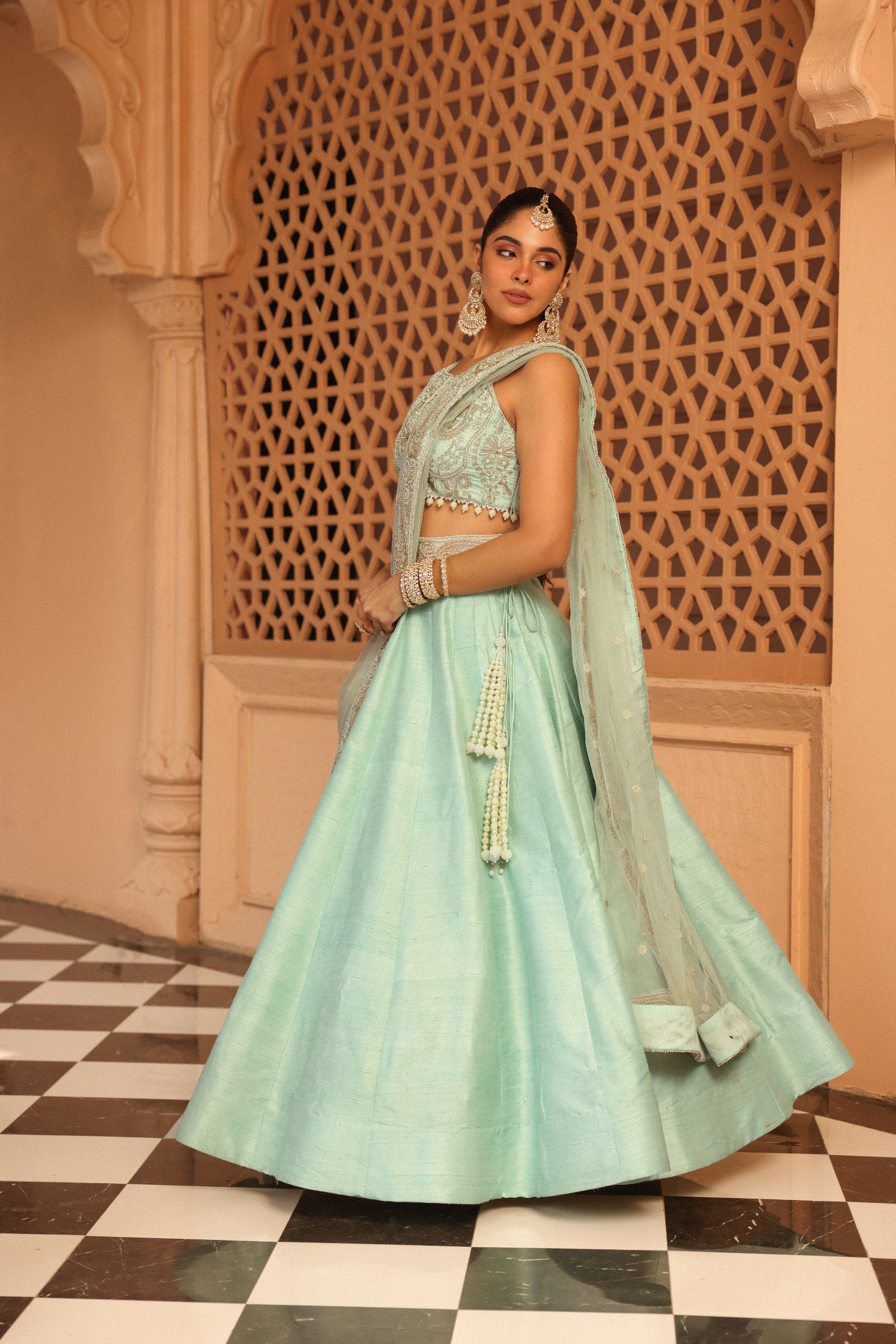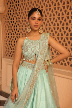 Afsa - Misty Green Lehenga with Blouse and Dupatta