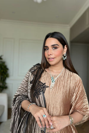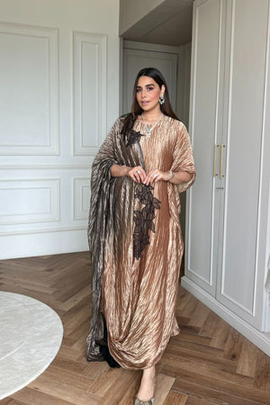 Each garment in this collection is a masterpiece, showcasing the rich heritage of Banaras Tissue Fabric through intricate weaves and luxurious textures collection features a range of silhouettes, from elegant contemporary sarees adorned with delicate coral motifs to exquisite Kaftaans embellished with intricate zari work. Each piece in the collection is designed to make a statement while ensuring comfort and ease of movement, allowing you to celebrate in style without compromising on comfort. Whether you choose to adorn yourself in a resplendent saree or opt for a contemporary fusion, this collection offers versatility and elegance for every occasion.