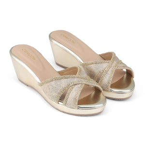 Classy yet easy to wear these slip-on gold wedges with embroidery are light weight and comfortable. These women’s shoes forms a part of our timeless collection and can be worn round-the-clock.