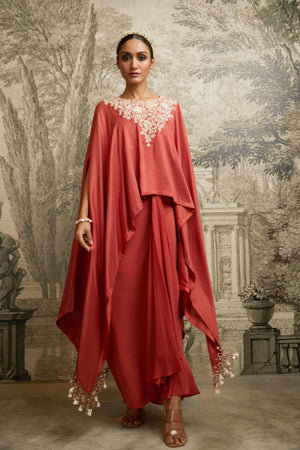 Resham and lampi work on Aline silk kaftaan with crepe skirt