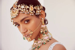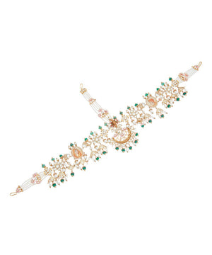 Kundan And Meenakari Mathapatti With 3d Peacock, Handpainted Bride – Groom, Elephants, Tablas And Flowers.