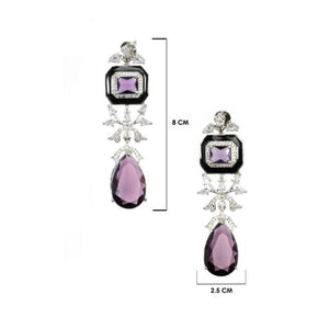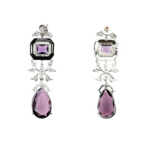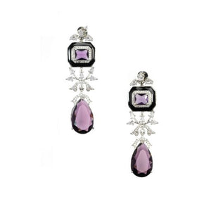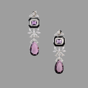 An enchanting fusion of bold design and timeless sophistication, these exquisite danglers are crafted to captivate, combining the deep allure of amythyst stones with the sleek beauty of black enamel