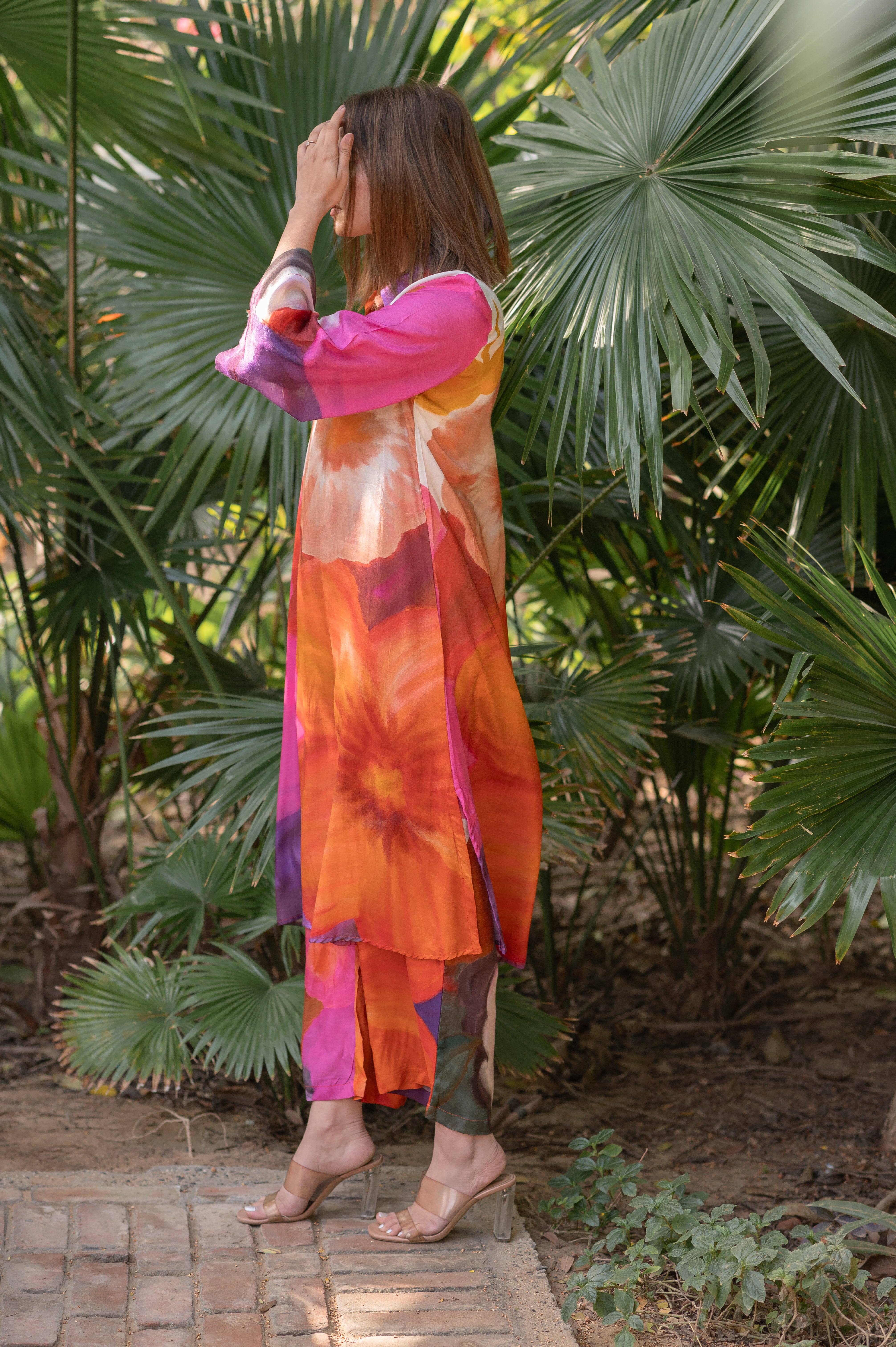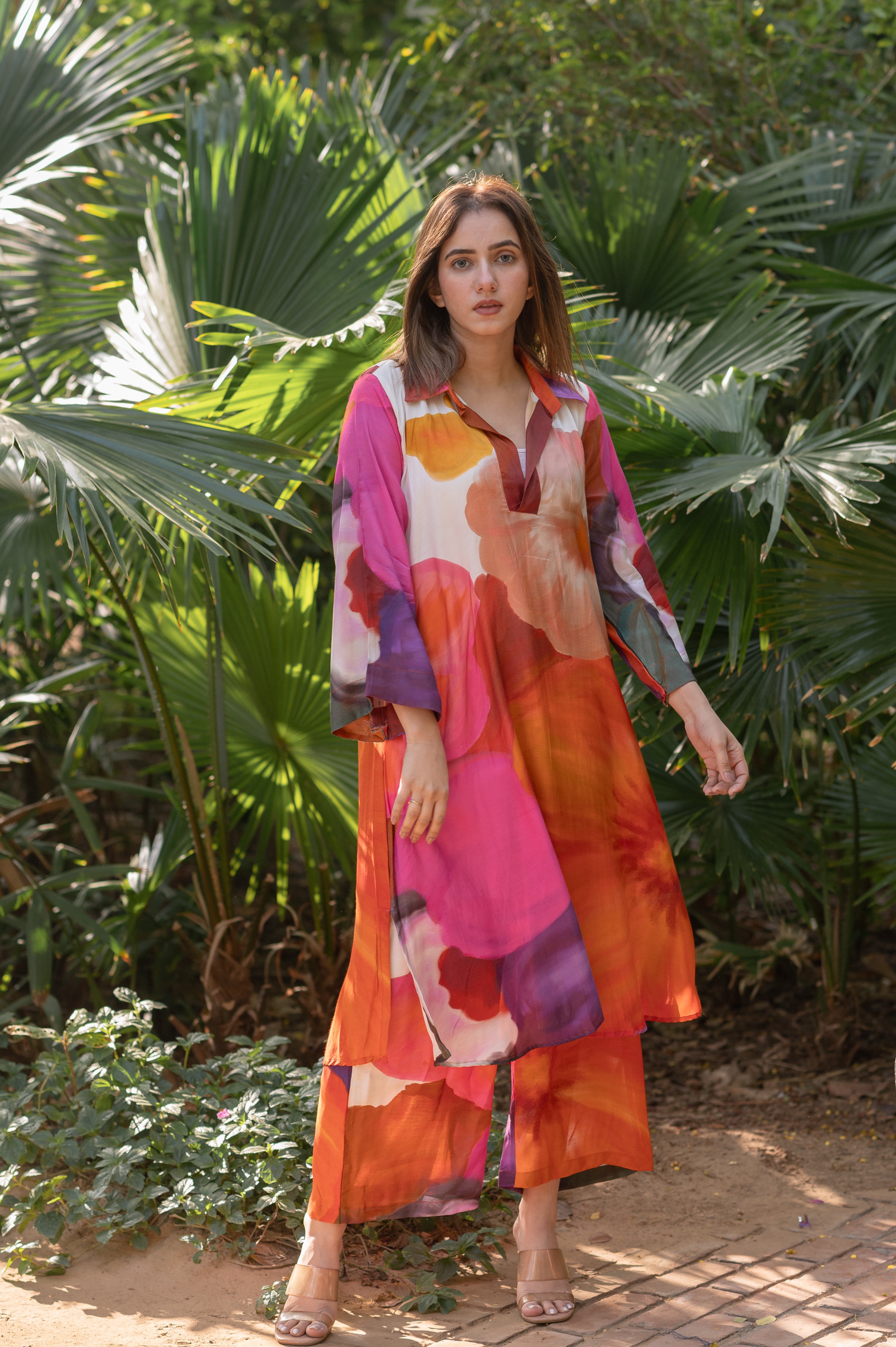 2. Multi Color Kurta With Pants. B.Sleeves - 3/4 Sleeves