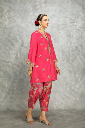 Angrakha With Printed Pants & Dupatta