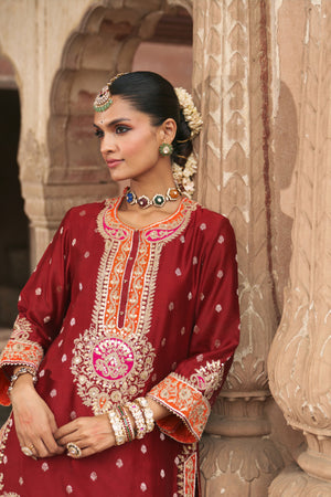 ANILA - DEEP RED SHORT KURTA WITH SALWAR