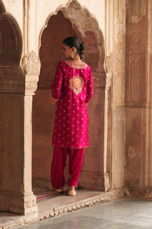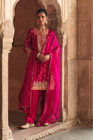 ANILA - HOTPINK SHORT KURTA WITH SALWAR WITH DUPATTA