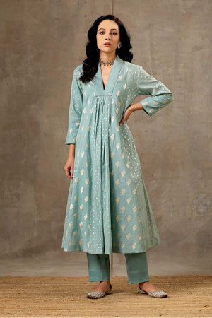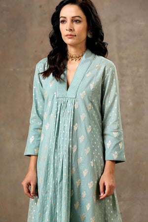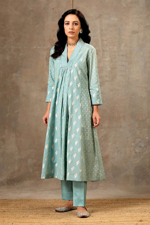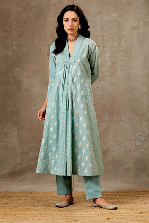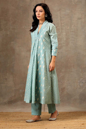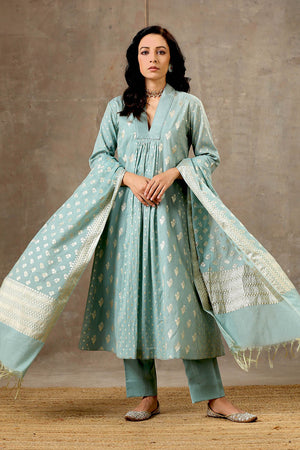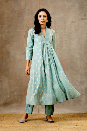 Aqua Blue Chanderi Silk Kurta Set in 5 Kalis