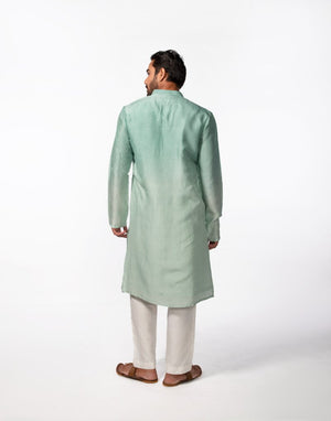 Aqua green kurta with twirl embroidery is paired with pant pajama.Kurta Length- 44''. **The color may slightly vary due to screen lighting