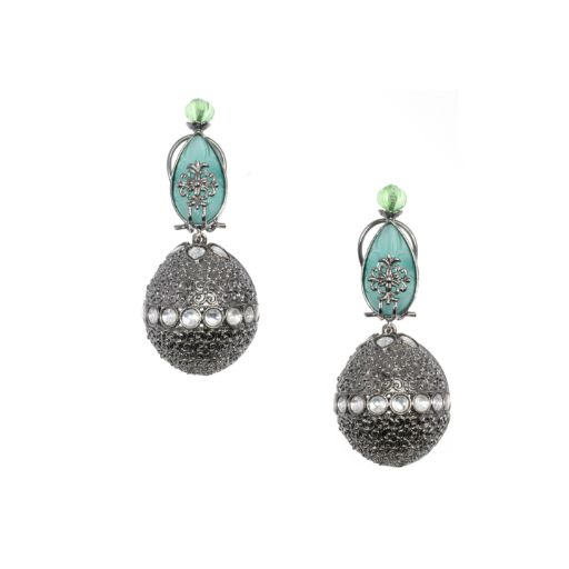 A modern blend to the classic dangler - rock these polki and aqua studded handmade earrings with westerns as well as traditional wear.
