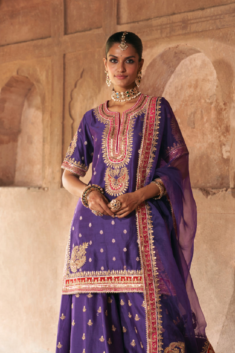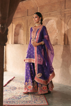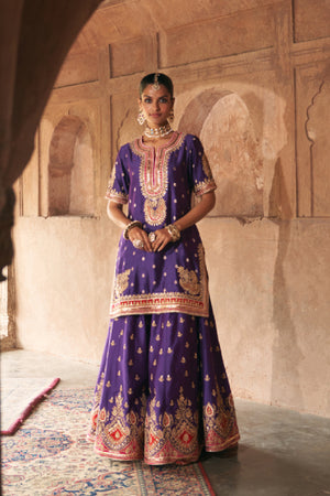 AREESHA - DEEP PURPLE SHORT KURTA WITH SHARARA AND DUPATTA