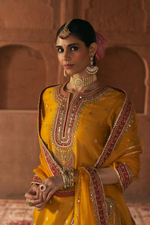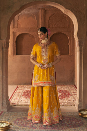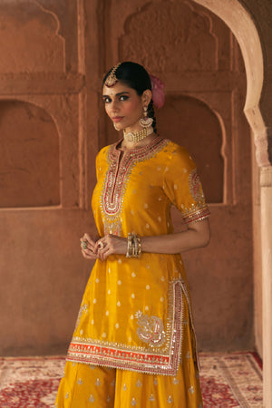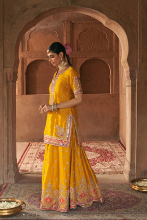 AREESHA - MUSTARD SHORT KURTA WITH SHARARA AND DUPATTA