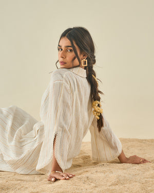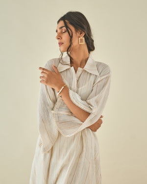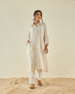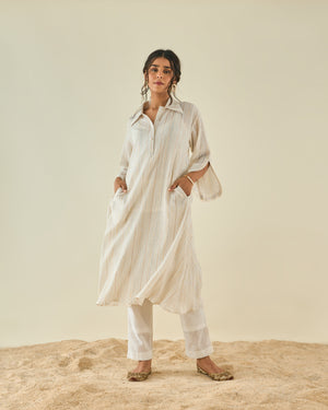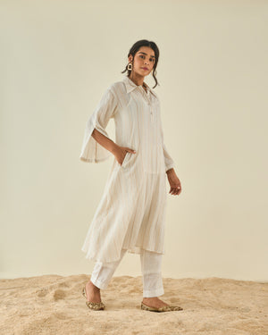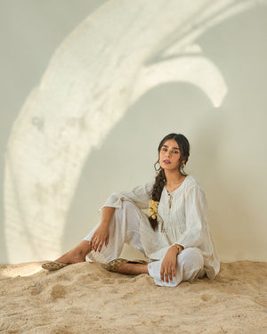 Pearl White Short Kurta Made In Embroiderd Cotton , Adorned With Fabric Buttons . When Paired With Mustard Self Cotton Salwar Gives You Modish Look