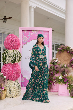 Printed Embellished Draped Full Length Kaftan
