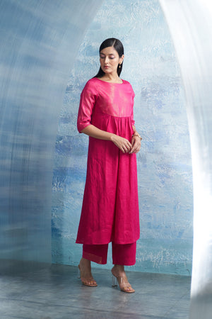 Aura Fuchsia Pink Round Yoke Kurta Set