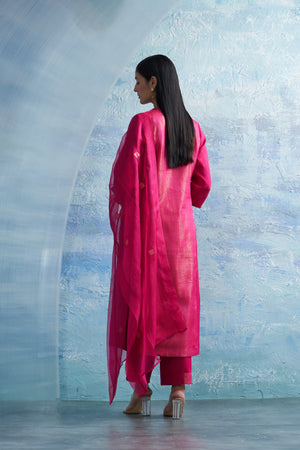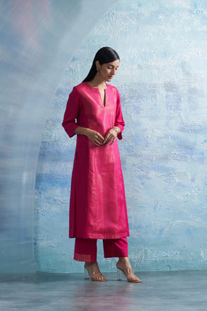 Aura Fuschia Notch-neck Kurta Set