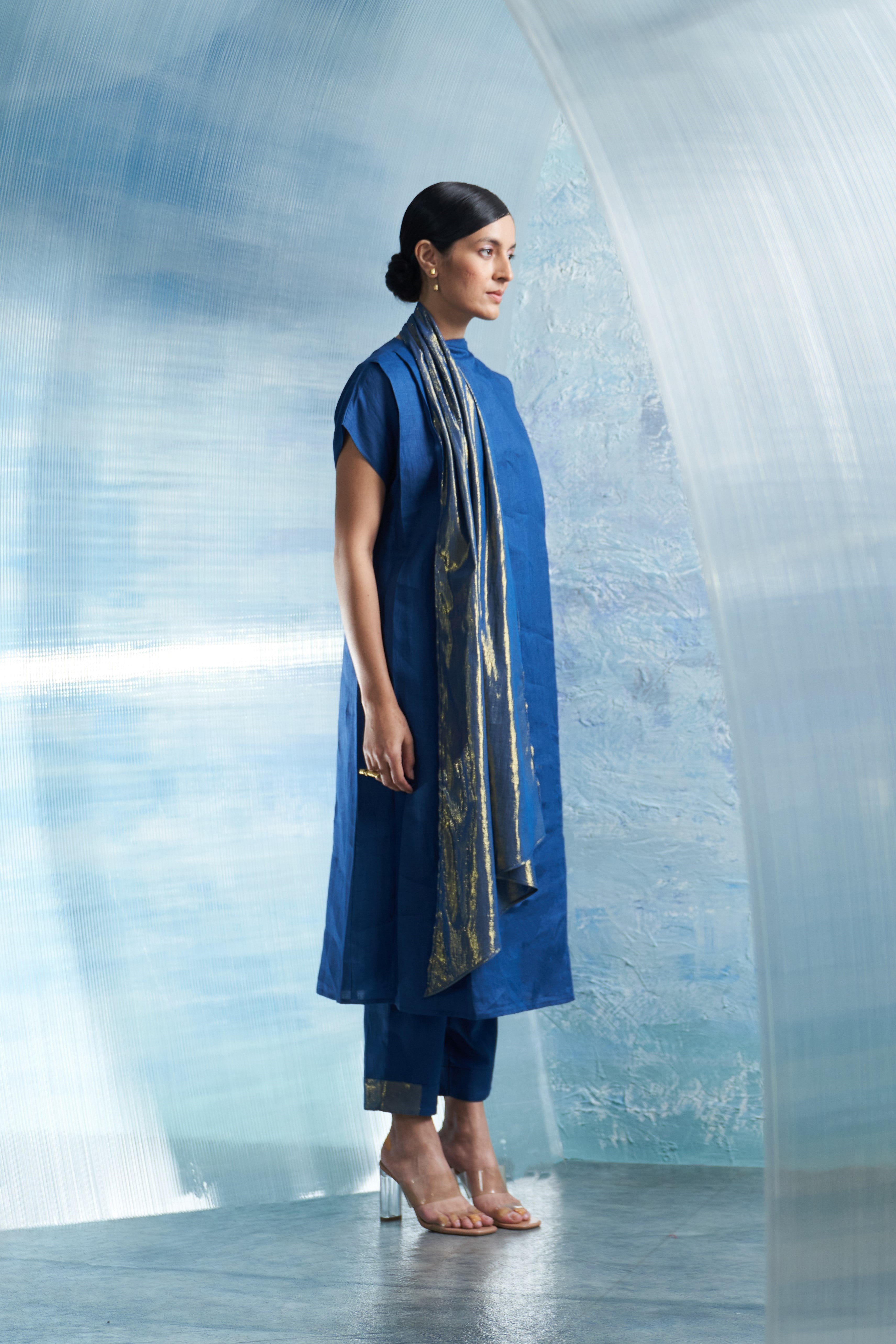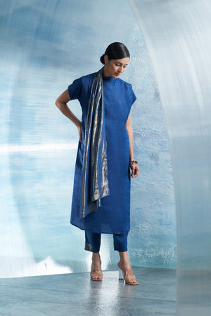 Aura Royal Blue Scarf Kurta Set