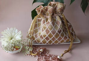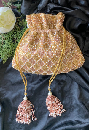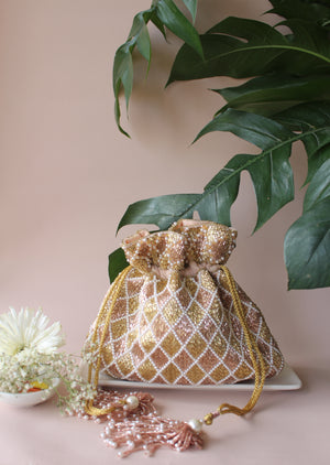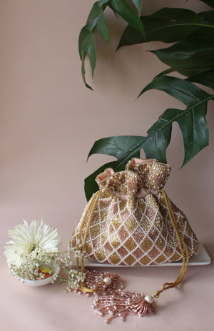 Shaded rose pink and gold modish base with criss & cross delicate pearl work.
