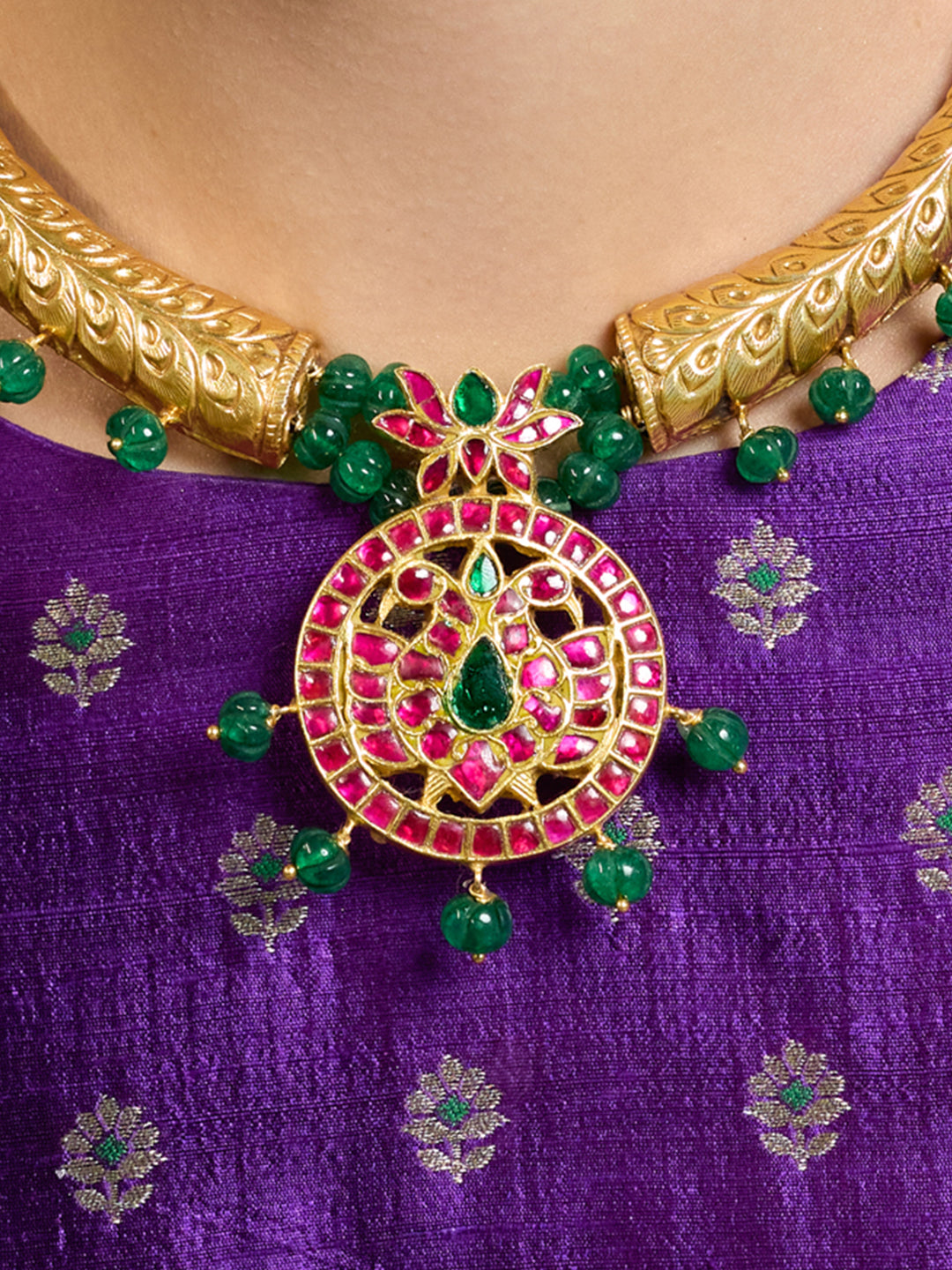 Elevate your elegance with the Auric Grace Royal Necklace — a stunning blend of tradition and charm, featuring intricate detailing and a radiant pendant perfect for festive and bridal occasions. Add matching earrings & accessories to complete the look.