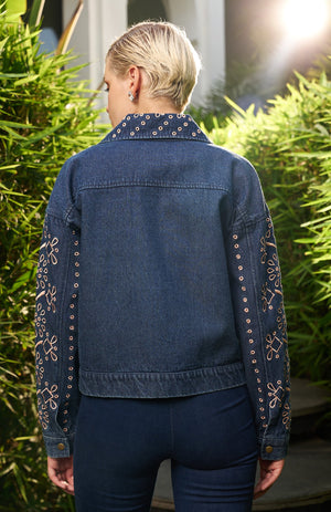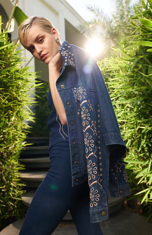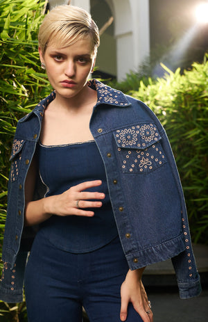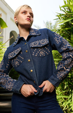 Silk thread embroidered jacket: Elegance in every stitch.