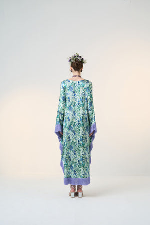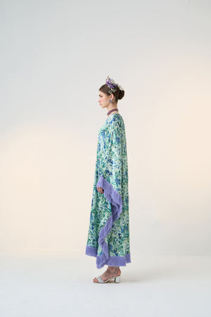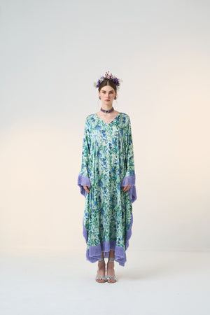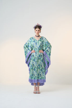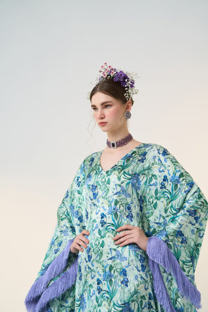 Mint Green & Blue, V- neckline, Silk fringes all over hemline.