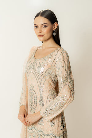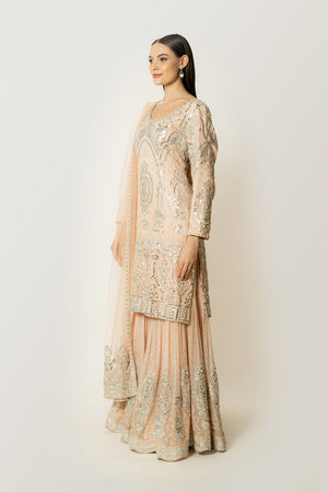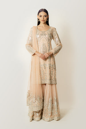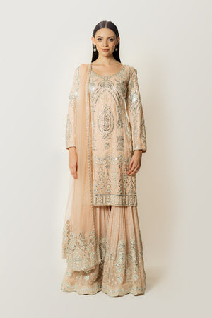 Gorgette Kurta & Gharara , Net Dupatta