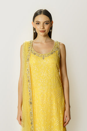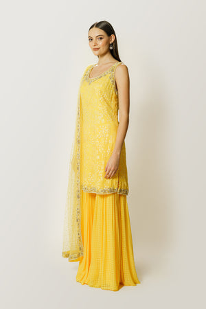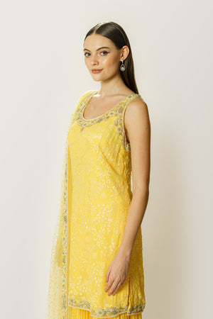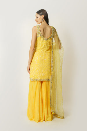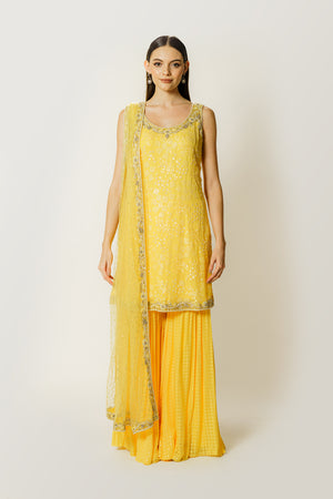 Lemon Yellow Sequin Kurta/Gharara Set