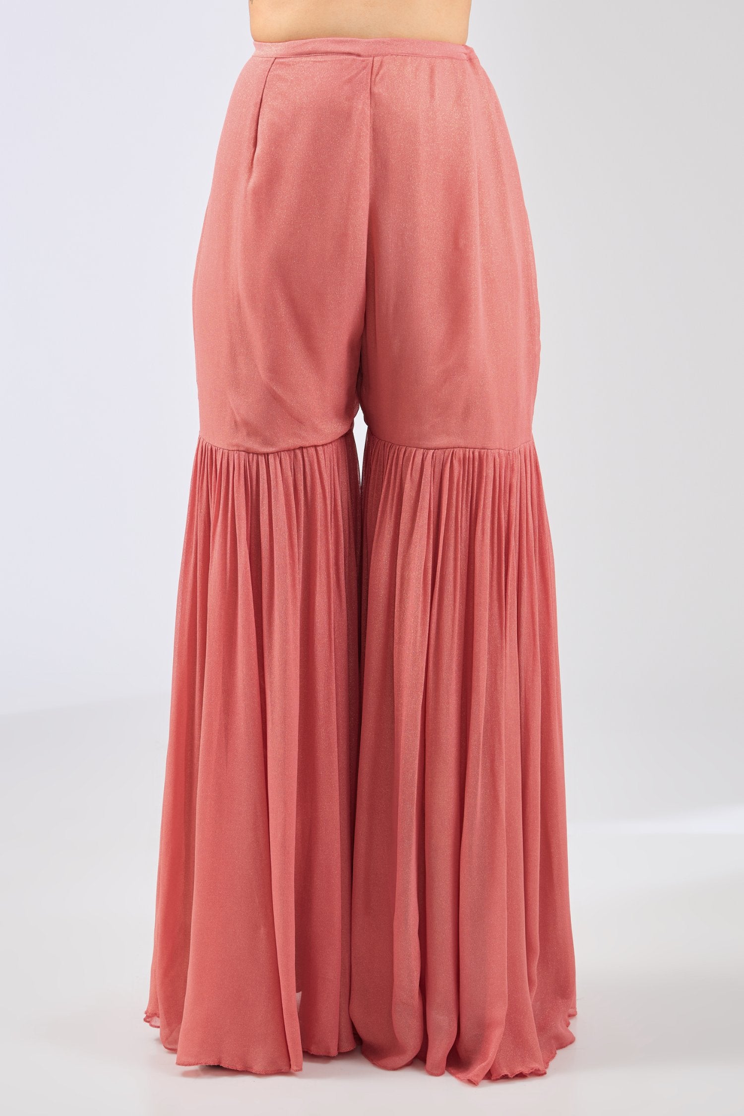 Pink Multi Color Bandhini Kurta Set W Georgette Pallazo W Hand Embo. Border Net Dupatta