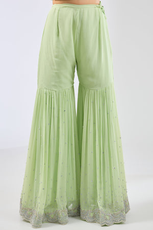 Lime Green Gorgete Full Hand Work Kurta /Gharara Set Net Dupatta