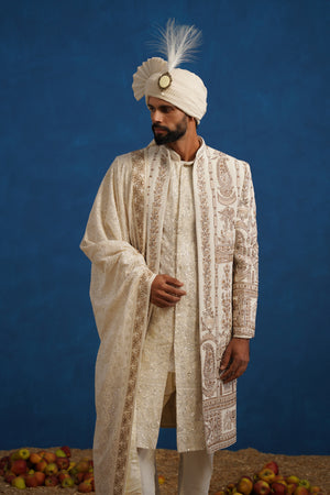 BADSHAH ZARDOZI CREAM SHERWANI SET