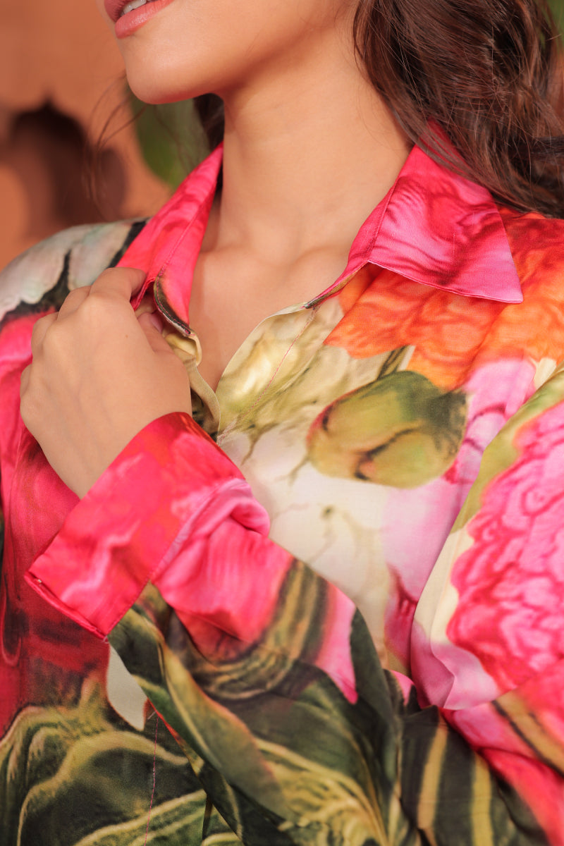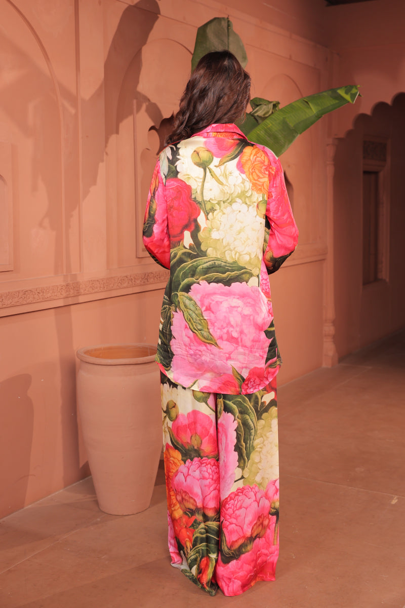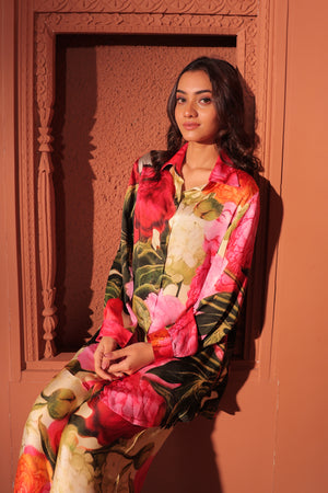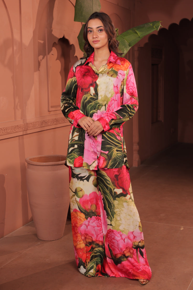 The Bageecha Co-ord Set features a vibrant, all-over floral print
