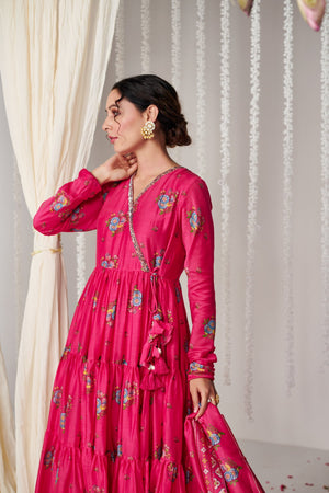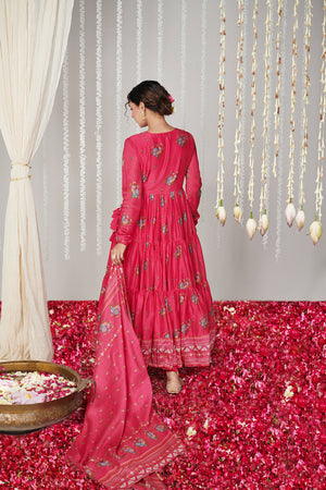 Bagicha Hot pink Angrakha Anarkali set of 3