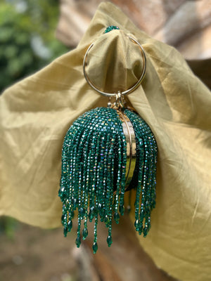 Green round bag is meticulously crafted for both intimate and grand occasions.