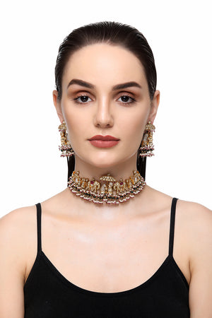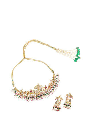 Kundan Choker showing a procession or baraat with bunches of pearls and semi-precious stones.