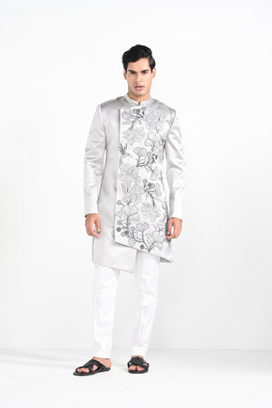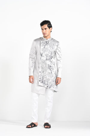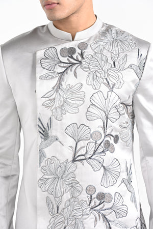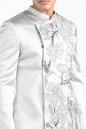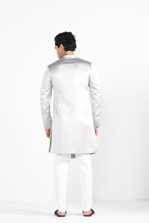 Barely Grey Satin Achkan Set