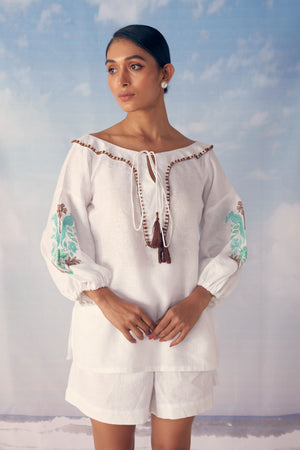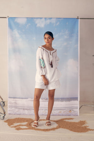 White Linen Short Set With Embroidery